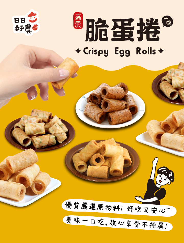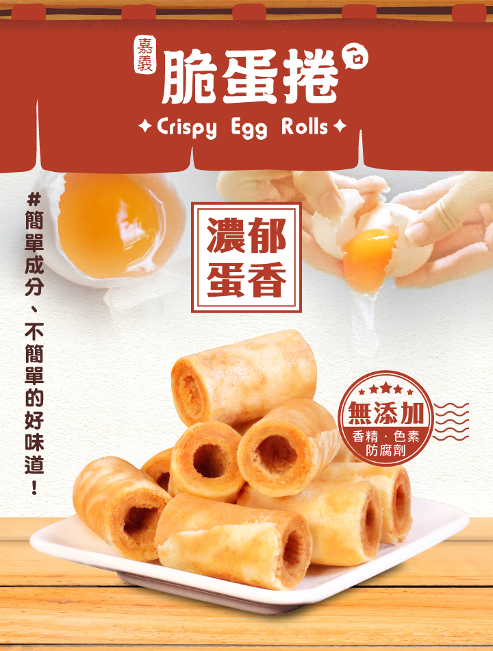 🥚 脆蛋卷口感为「厚实」+「松脆」,不是硬脆的口感哦!蛋卷开封后请立即封好夹链袋,否则约 10 分钟就容易受潮变软。
