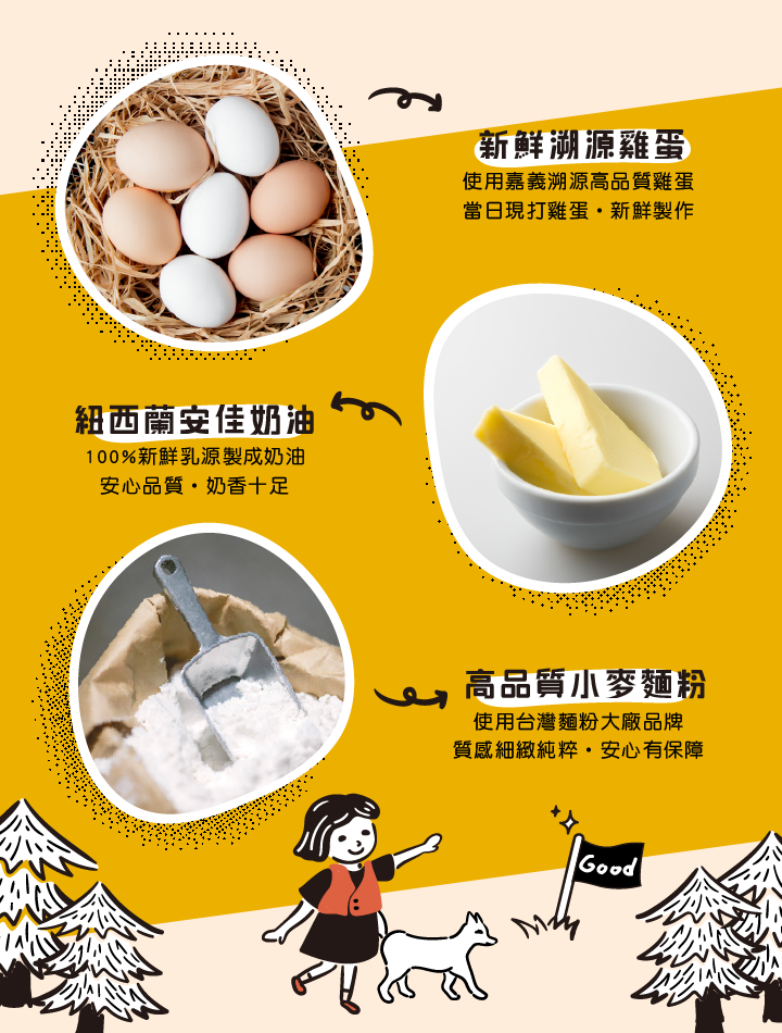🌟 原味蛋香:选用台湾在地生产的高品质鸡蛋与优质面粉,吃得到真实的蛋香与麦香。