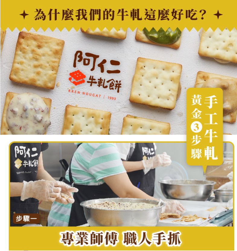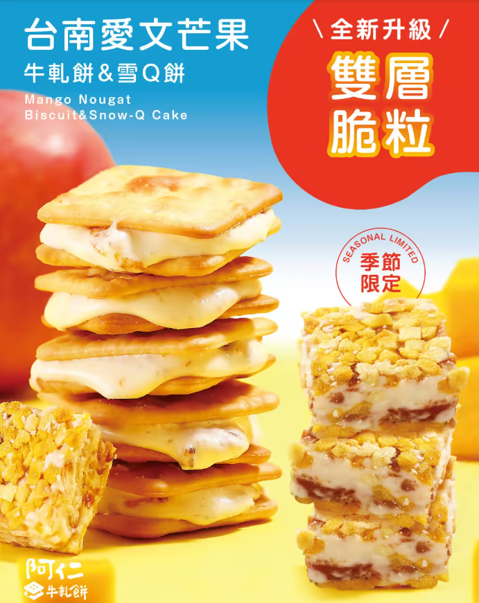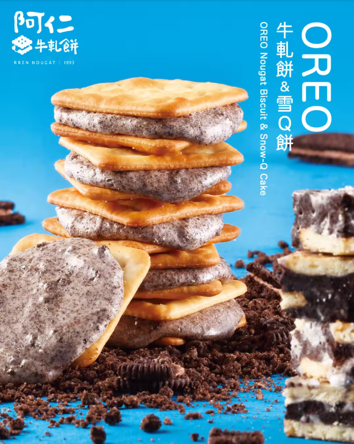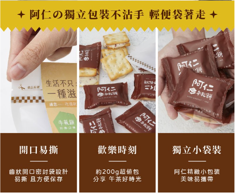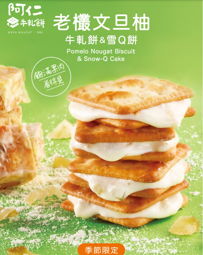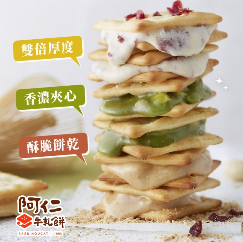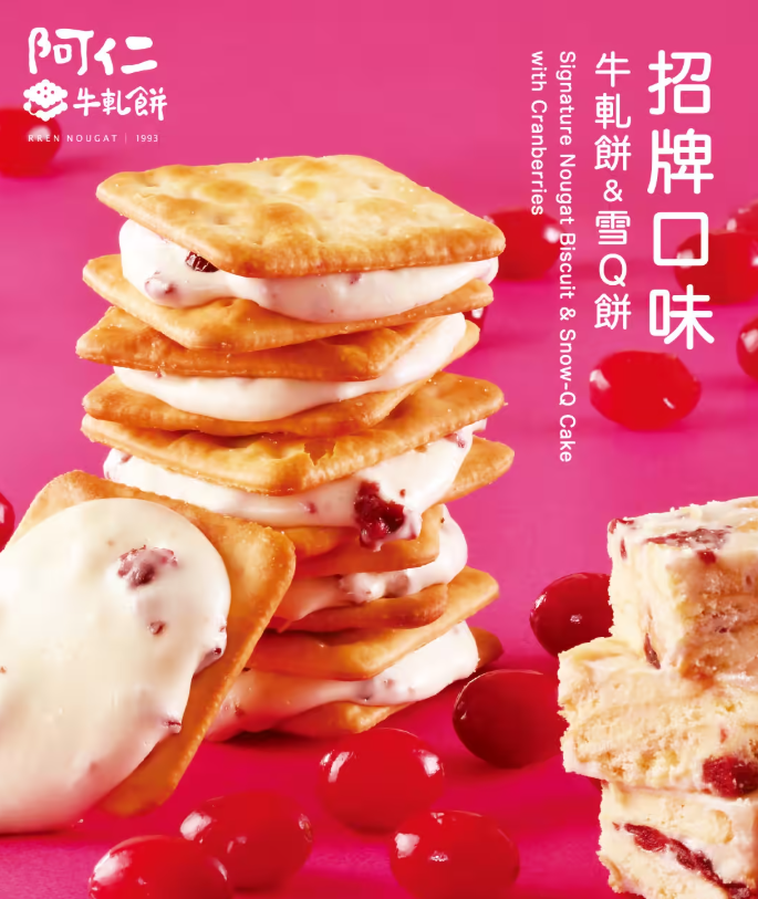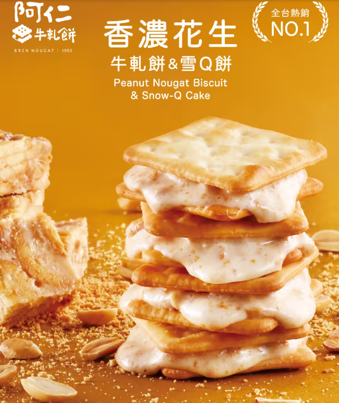 •严选香酥苏打饼夹入软Q牛轧内馅,一口咸甜完美平衡。