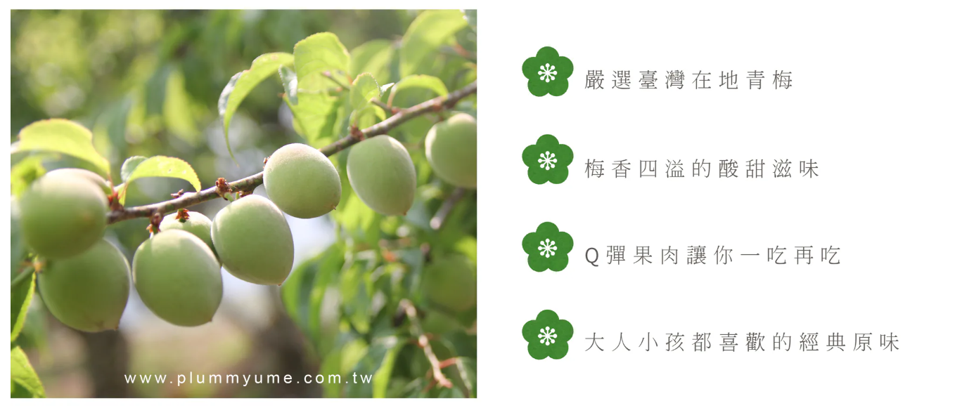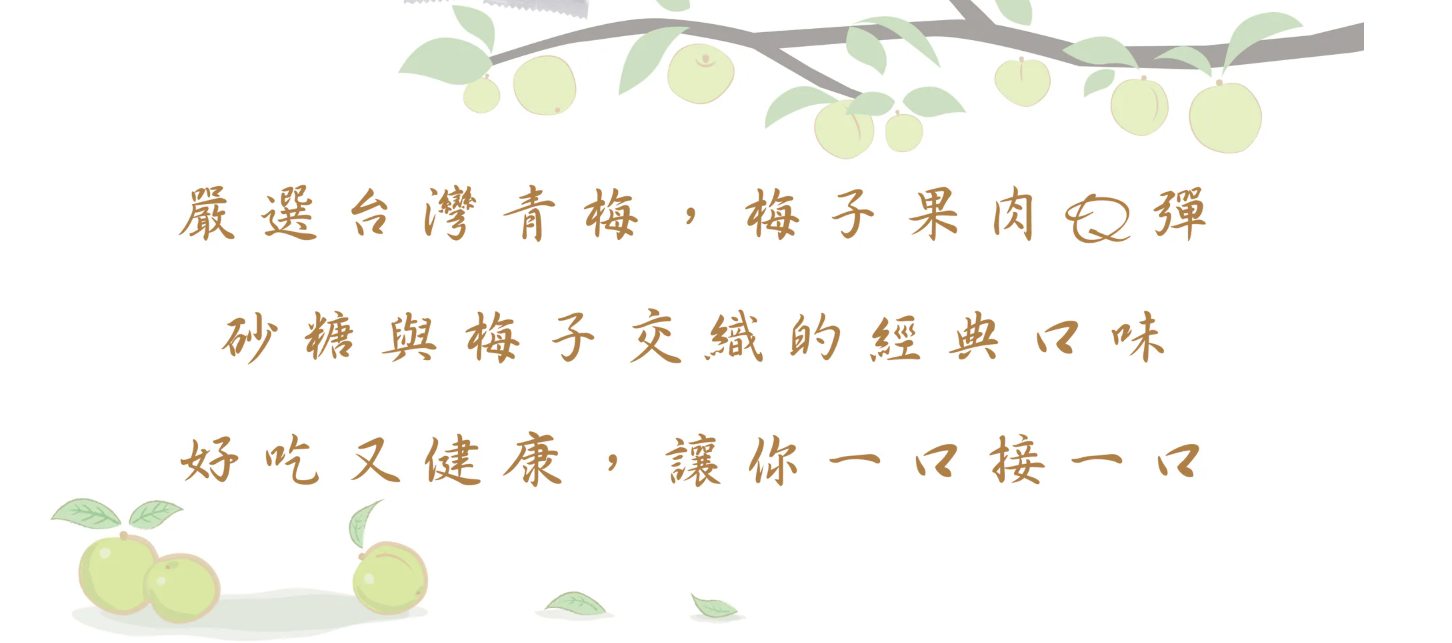 酸甜开胃、Q弹无籽,每一颗都满满果香!【梅问屋】严选台湾优质梅子,采用低盐渍制与独家熟成工法,完整保留梅子的自然酸甜与果香,让你一口咬下,Q弹多汁、回甘不涩。